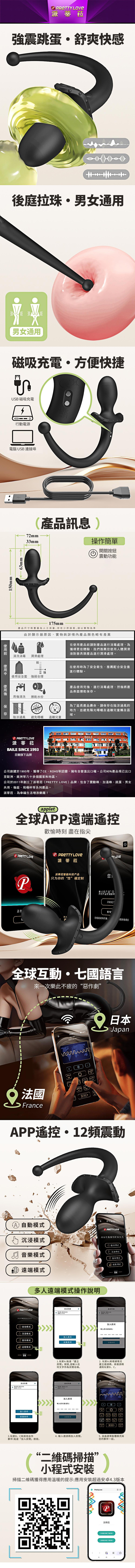 【商品名稱】 安東尼智能12頻震動拉珠肛塞(可單控或APP遙控)
