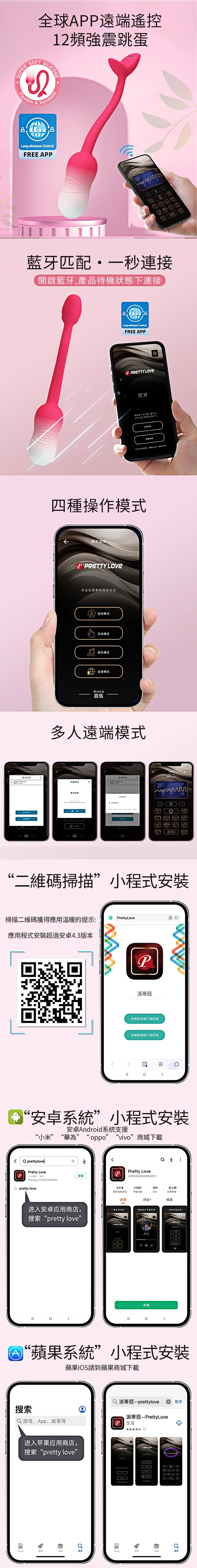 【商品名稱】 利維坦曲線智能12頻跳蛋-漸粉(可單控或APP遙控)