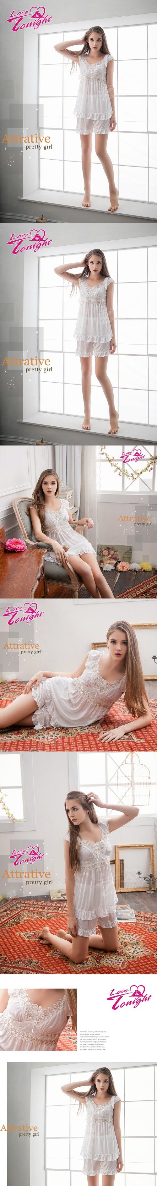 俏麗二件式睡衣(大尺碼)T1387-白-L
