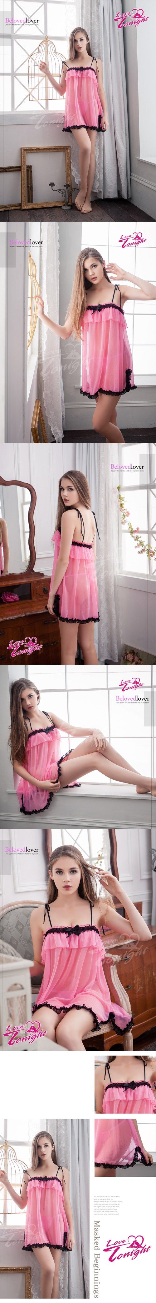 性感蓓蕾睡衣(大尺碼)T1407-粉-L