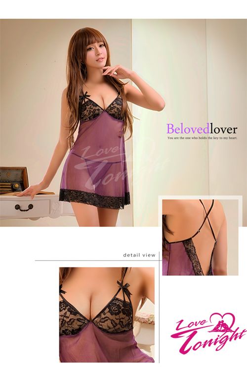 薄透柔紗睡衣T1346-紫-F