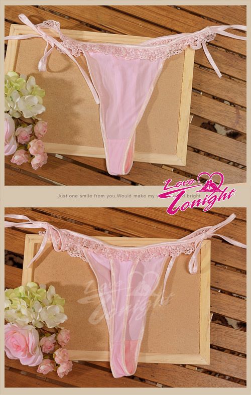 浪漫蕾絲丁字褲T5119粉-綁帶