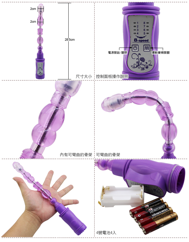東方美人 8段變頻式強力G點後庭防水震動棒-紫