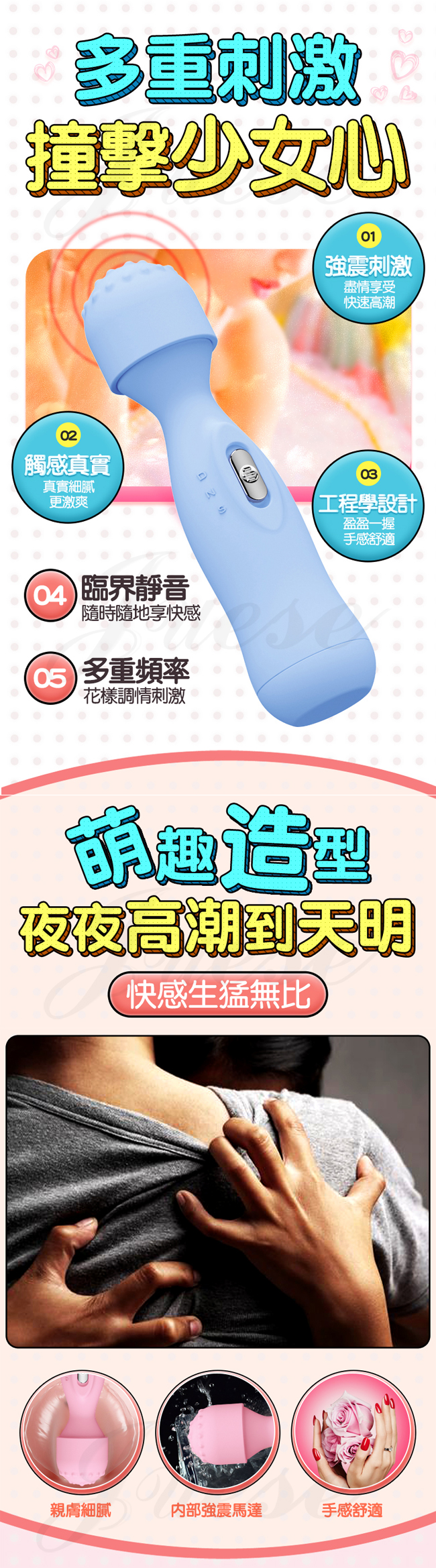嗨點AV棒 萌趣造型顆粒刺激震動按摩棒-粉