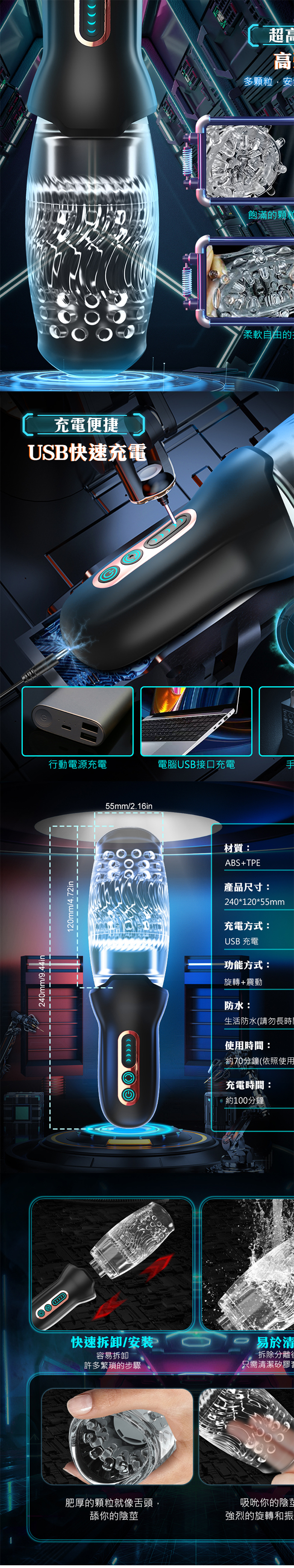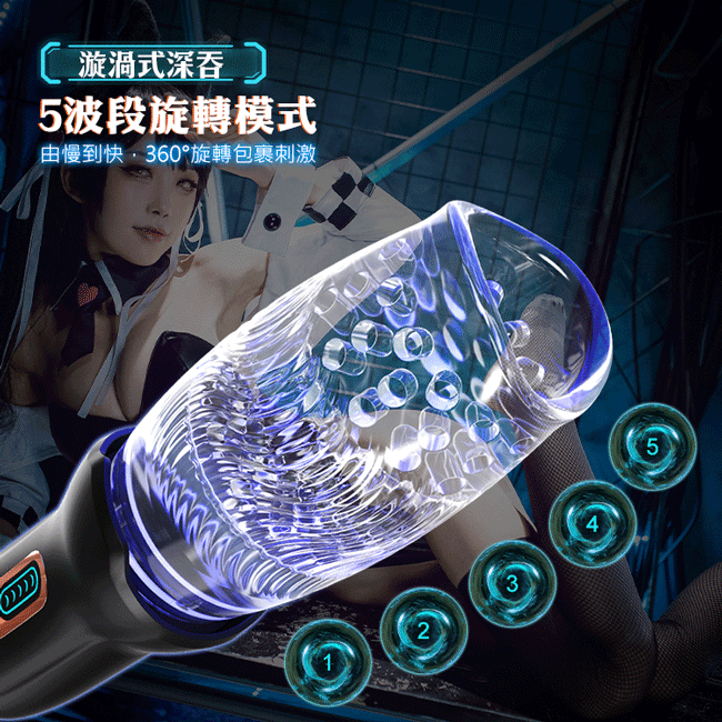 勇士 5段旋轉+10頻震動環繞式擼莖USB充電電動自慰杯