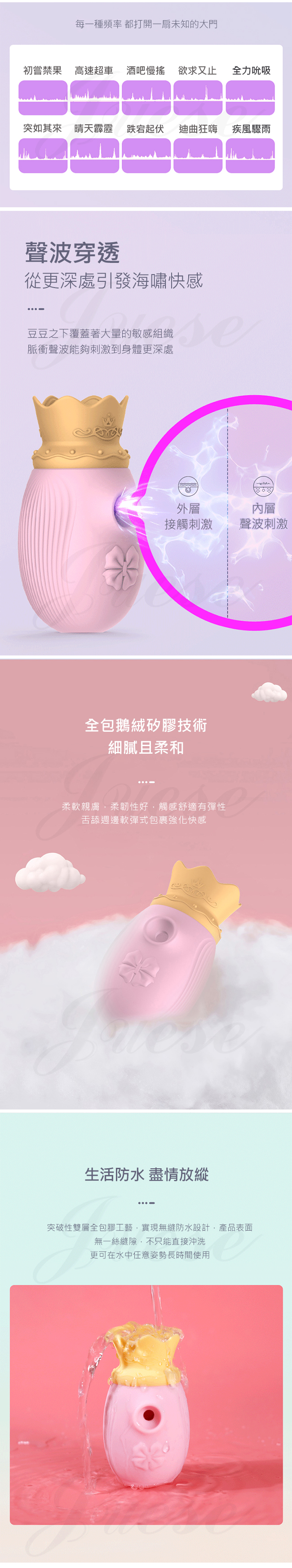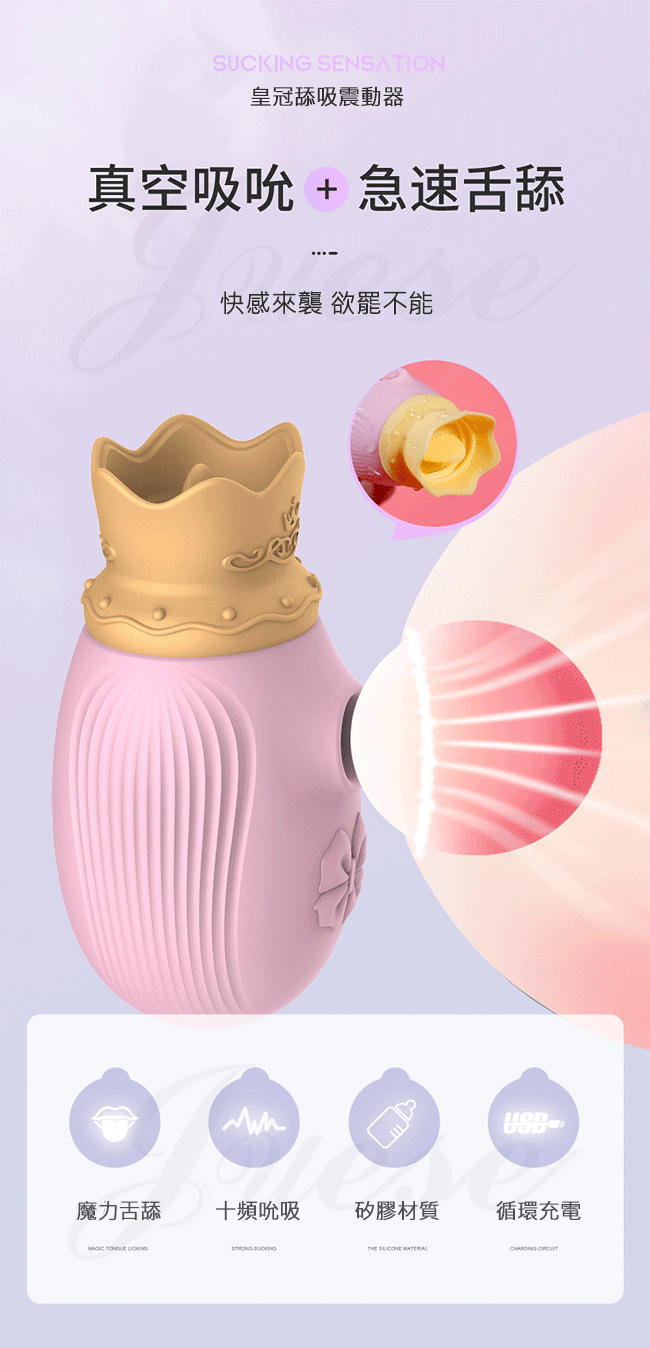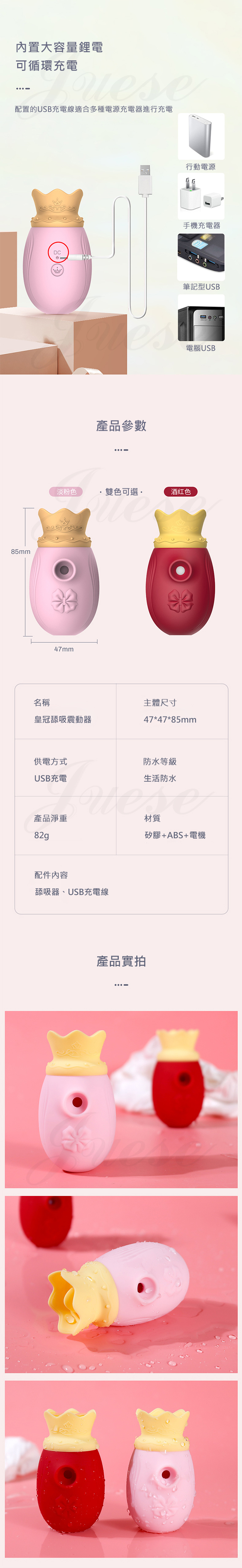 皇冠 10段變頻吮吸魔力舌舔 USB充電矽膠按摩器-酒紅色