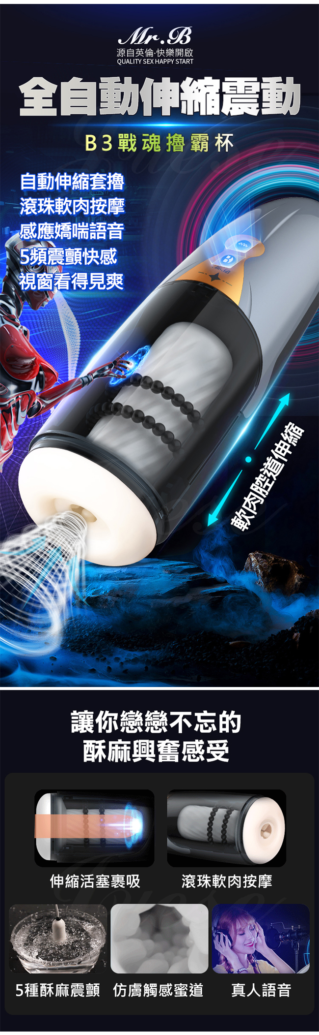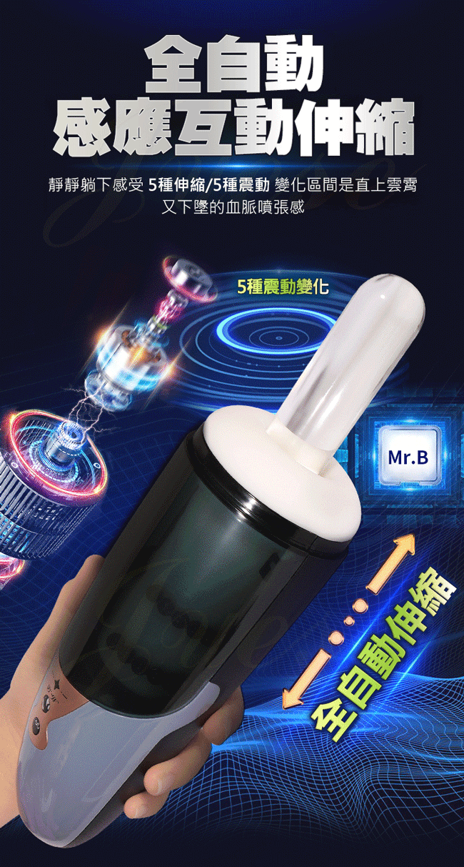 自動伸縮擼霸 5x5頻震顫自動伸縮感應語音自慰杯