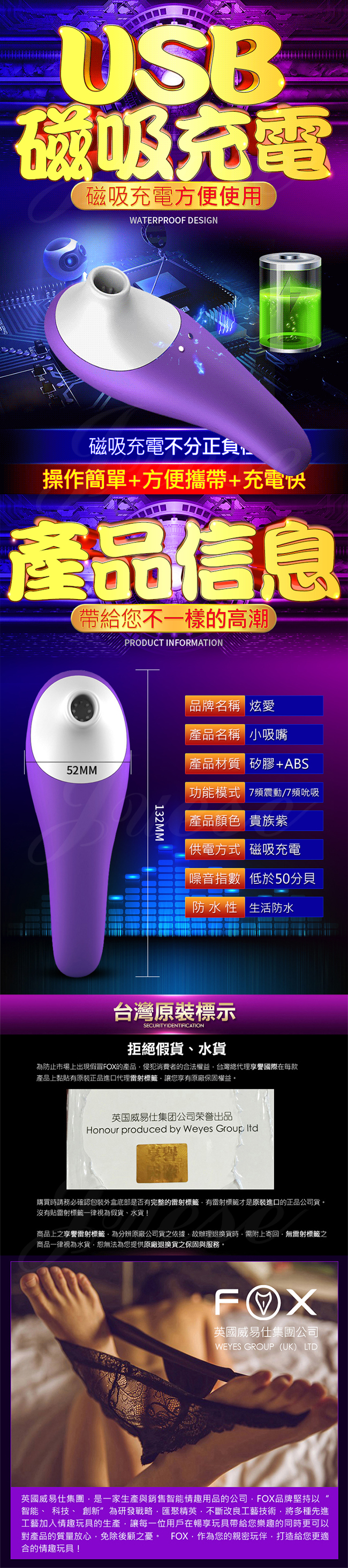 英國FOX-小吸嘴 7段變頻震動吸吮口愛按摩棒-紫