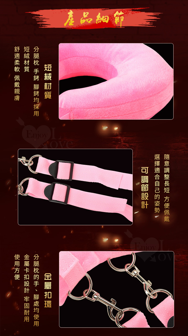 【缚の性趣】張腿性愛枕帶 - 夫妻輔助體位道具﹝含手腳雙銬﹞粉色