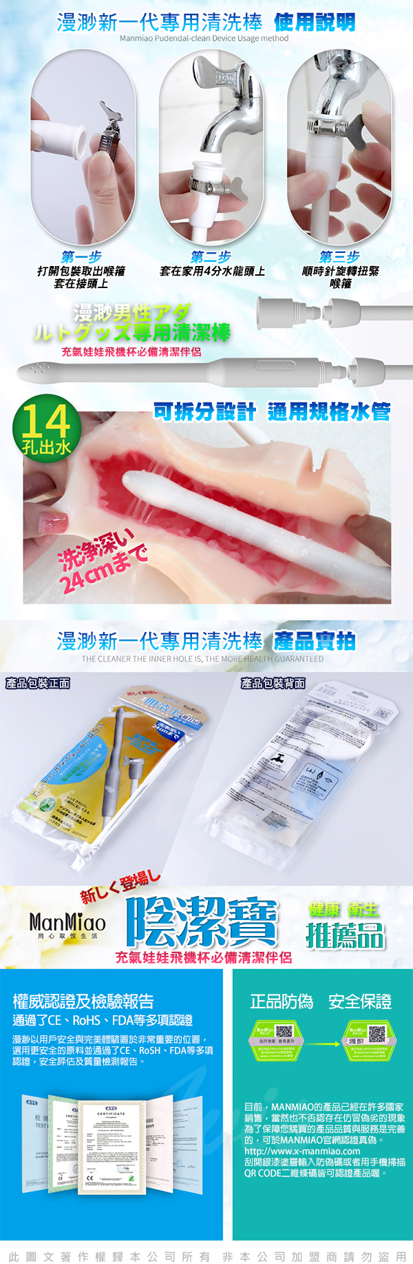 陰潔寶 男性自慰器專用清洗棒 14出水孔