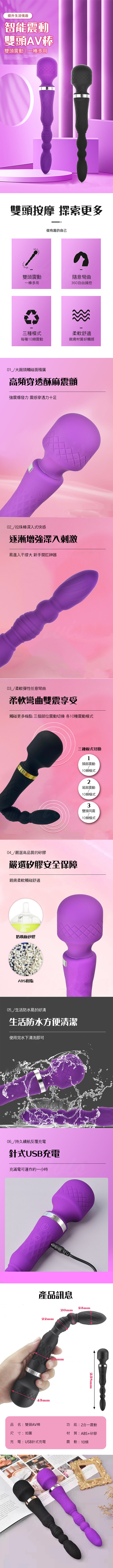 雙嗨棒 2合一雙頭10頻震動拉珠USB充電AV按摩棒