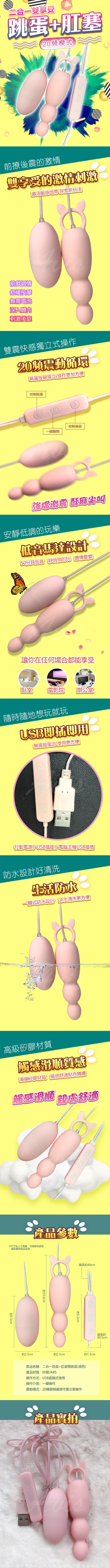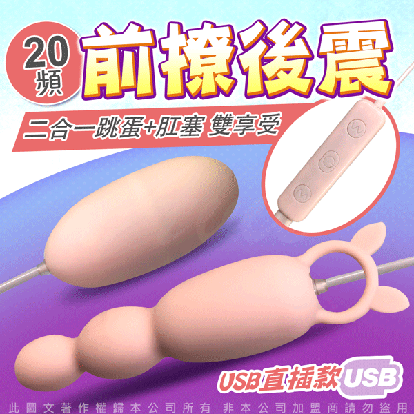 跳蛋+後庭拉珠 20段變頻 二合一跳蛋 USB直插