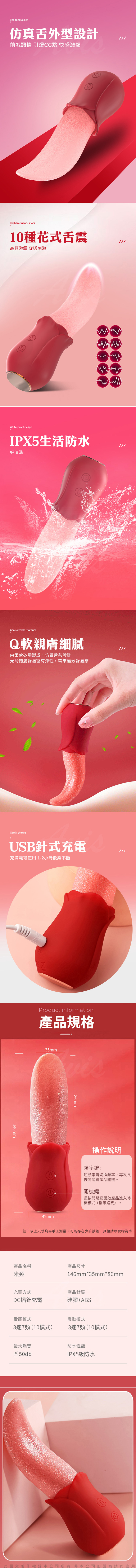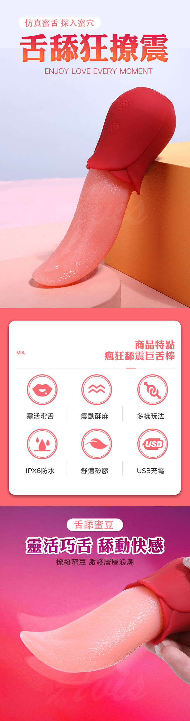 米婭舌舔10頻震動棒 柔軟仿真舌頭USB充電防水按摩棒