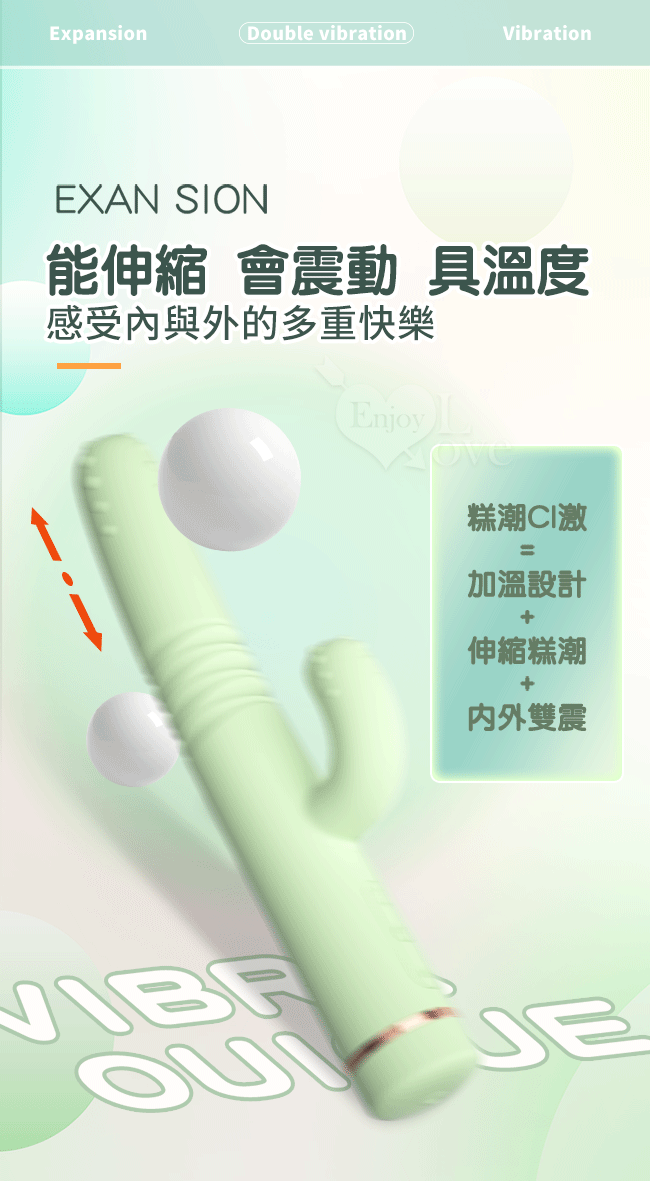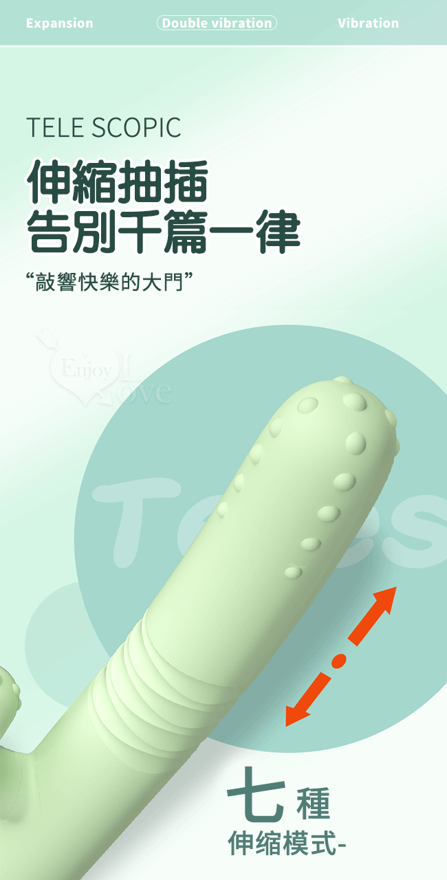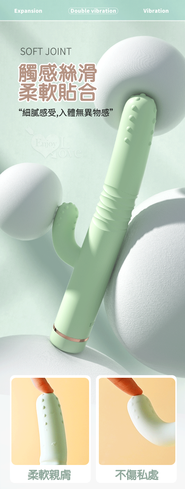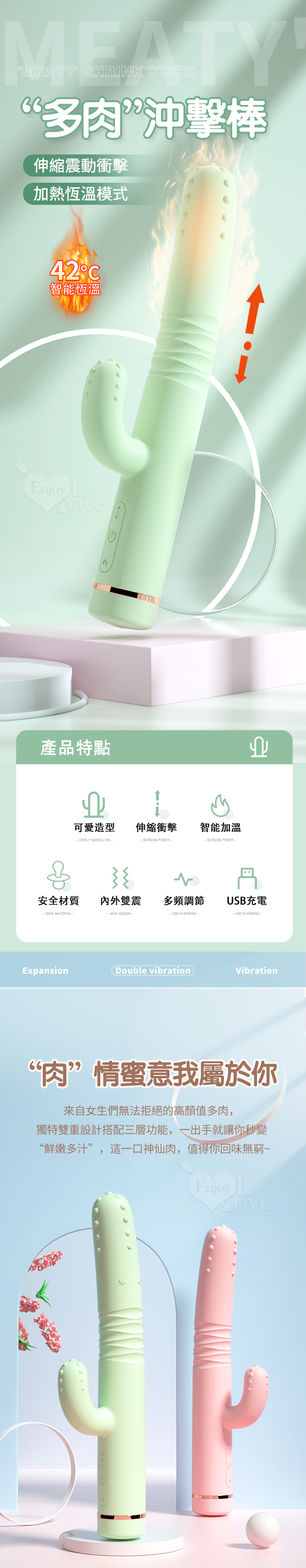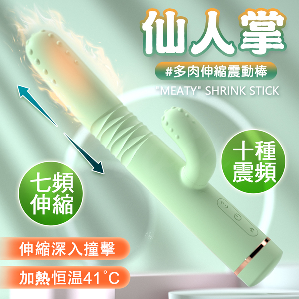 仙人掌多肉沖擊棒7頻伸縮X10頻震動智能加溫 內外雙震+USB便捷充電-蘋果綠
