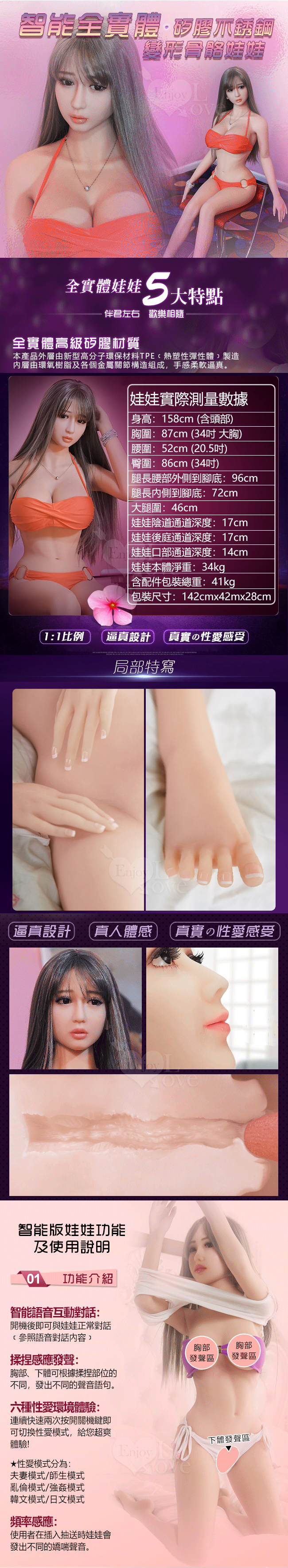 靜雅 青春情人全實體真人智能版愛娃 5大特點+4種互動功能 無線感應控制158cm / 34kg