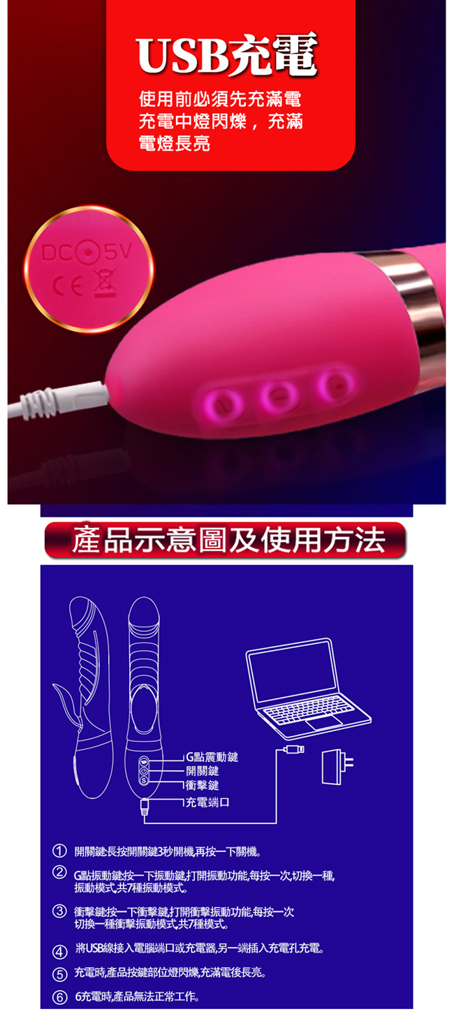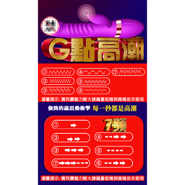 香港Mannuo*Kathy凱蕾 7x7頻磁震衝擊G點按摩棒(玫紅)