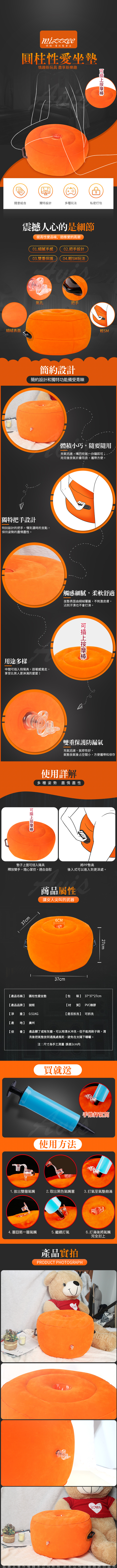Mizz Zee 圓柱小愛墊 SM細絨充氣墊(可放吸盤型逼真棒)-獨特把手設計(附專用電動打氣機)