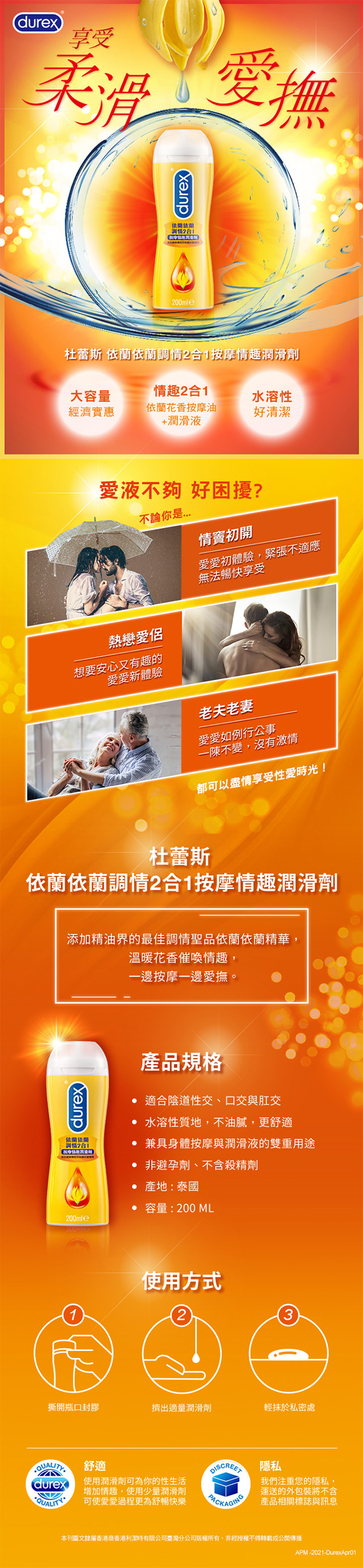 杜蕾斯依蘭依蘭調情2合1按摩情趣潤滑劑200ml-新裝
