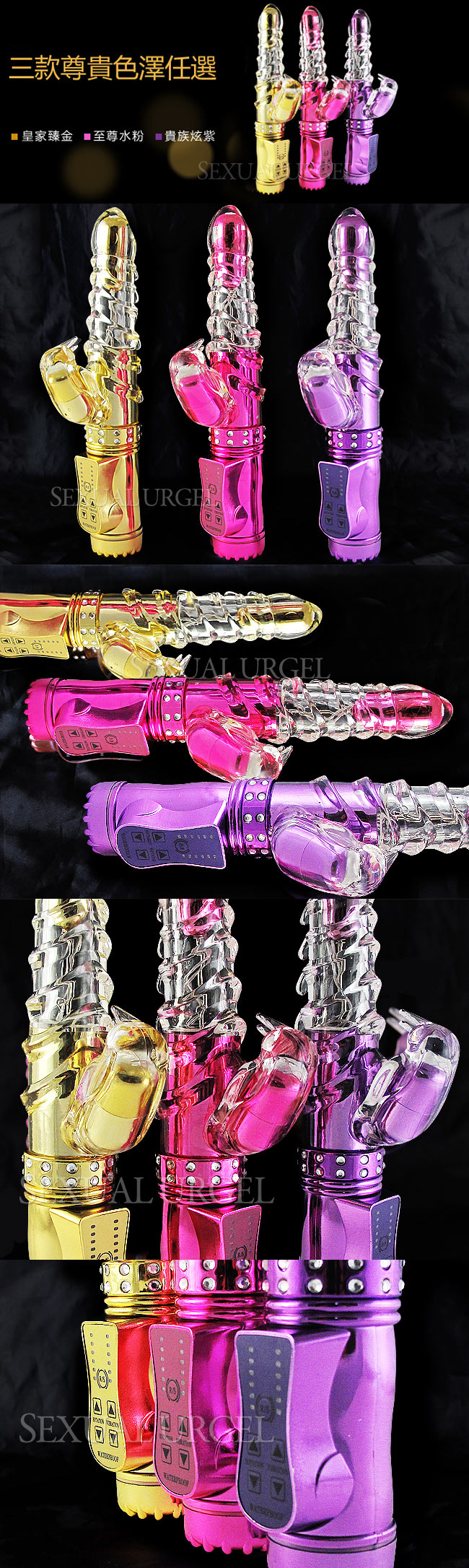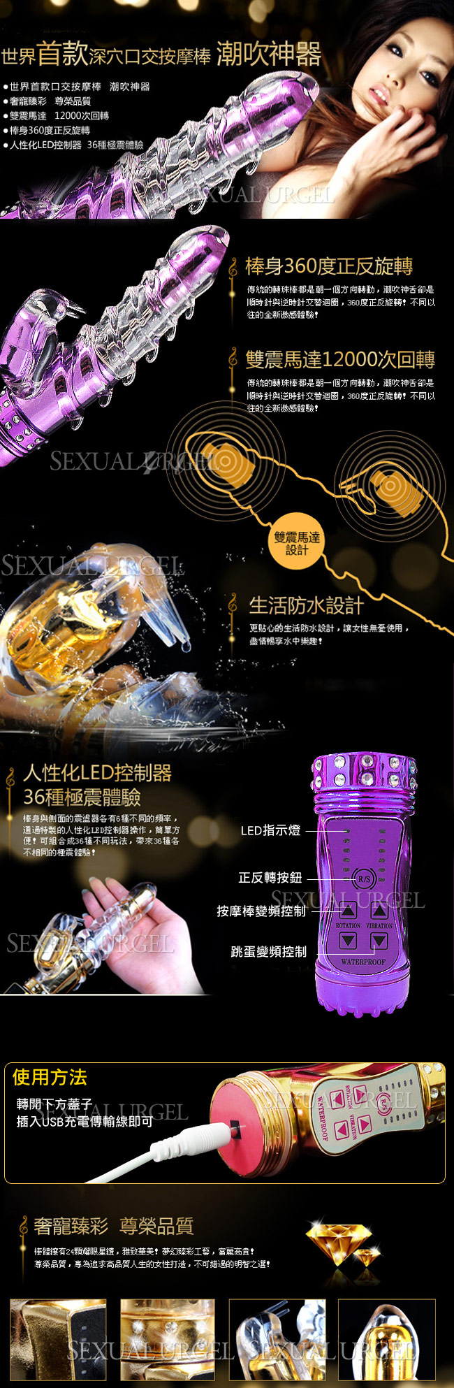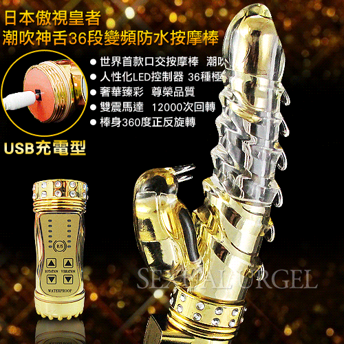 日本傲視皇者-潮吹神舌8x36段變頻防水按摩棒-至尊水金(USB充電版)
