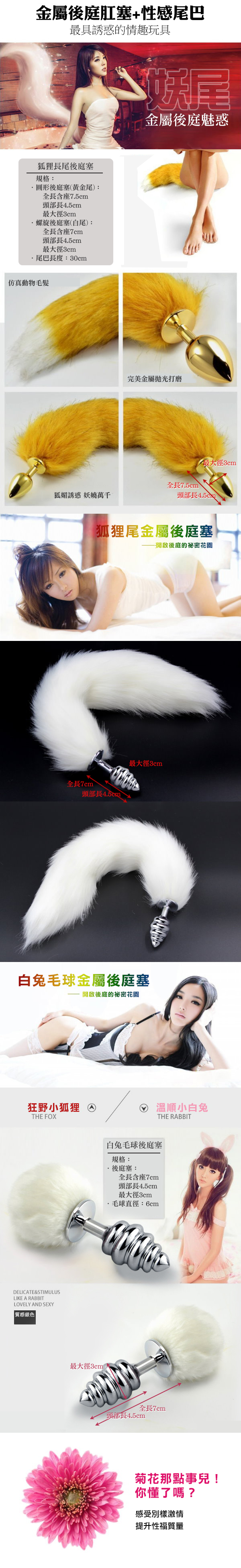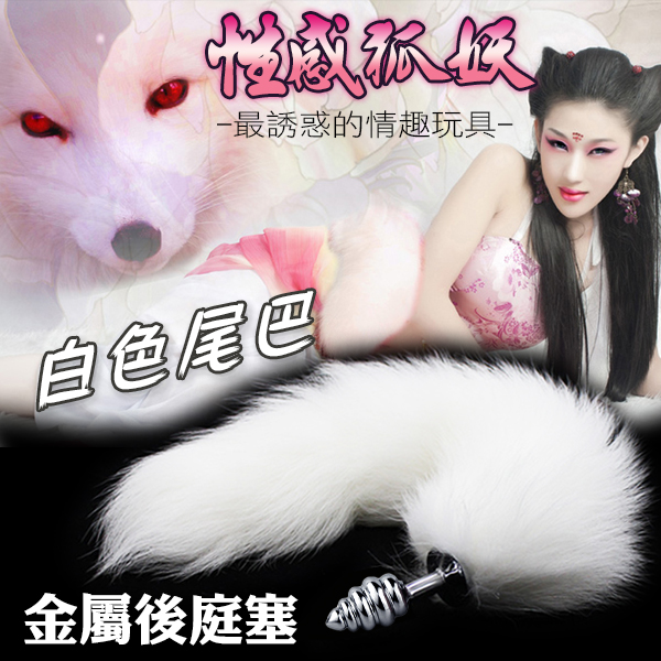 性感狐妖白色尾巴 金屬環狀後庭塞