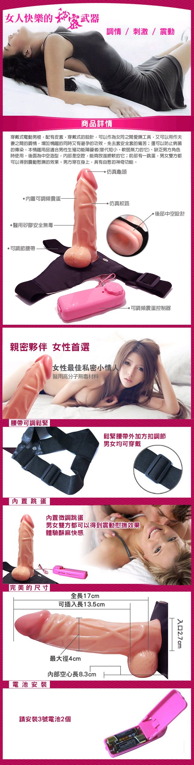 逼真防水空心穿戴震動棒