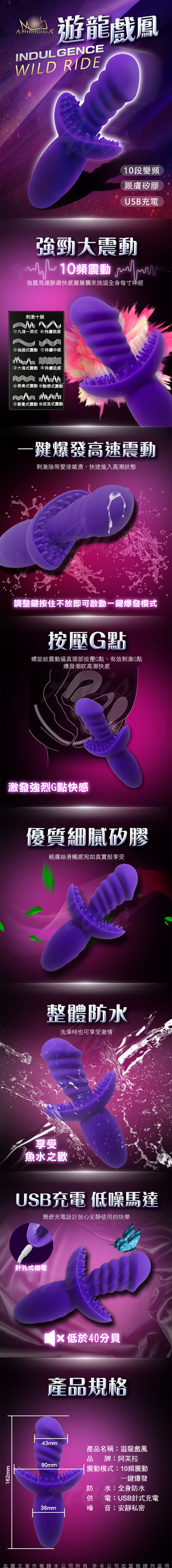 三點齊攻 前戲專家挑逗G點潮吹10頻螺紋震棒USB充電式-紫